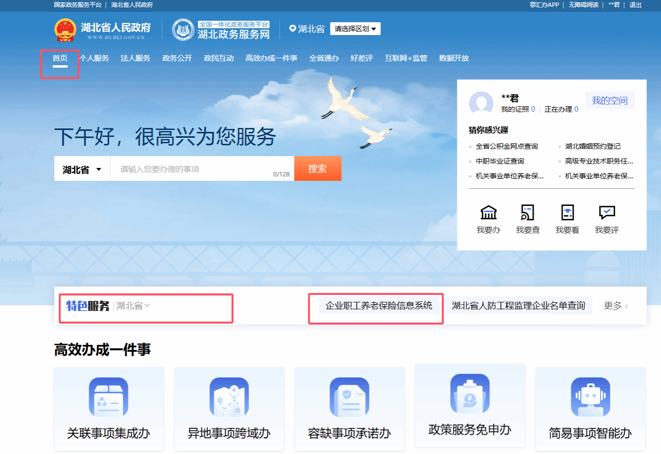 第三步:返回首页,在首页点击“特色服务”——“企业职工养老保险信息系统”。