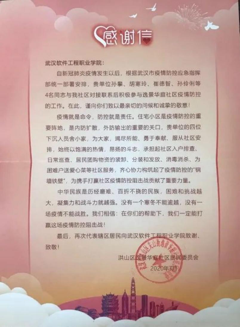 守望相助、共克时艰,情暖社区、无私奉献。一面面锦旗,一封封发自肺腑的感谢信,表达了对我校下沉社区教职工、党员干部抗疫工作的高度肯定和诚挚谢意。